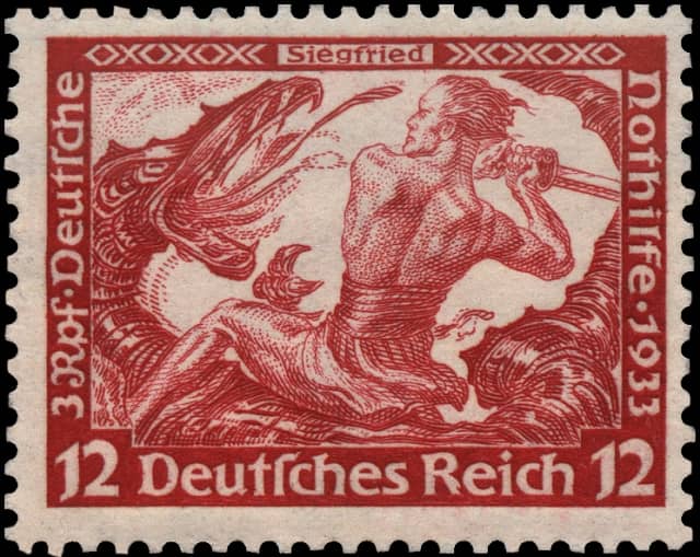 Représentation de Siegfried, le plus allemand des héros tuant le dragon puis s’emparant du trésor des Nibelungen.